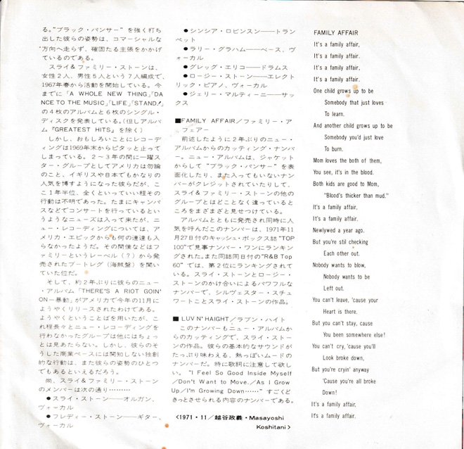 ▲KOTEZが手にしているのは日本盤シングル・レコード「ファミリー・アフェアー/スライとファミリー・ストーン」 from Mike’s Collection