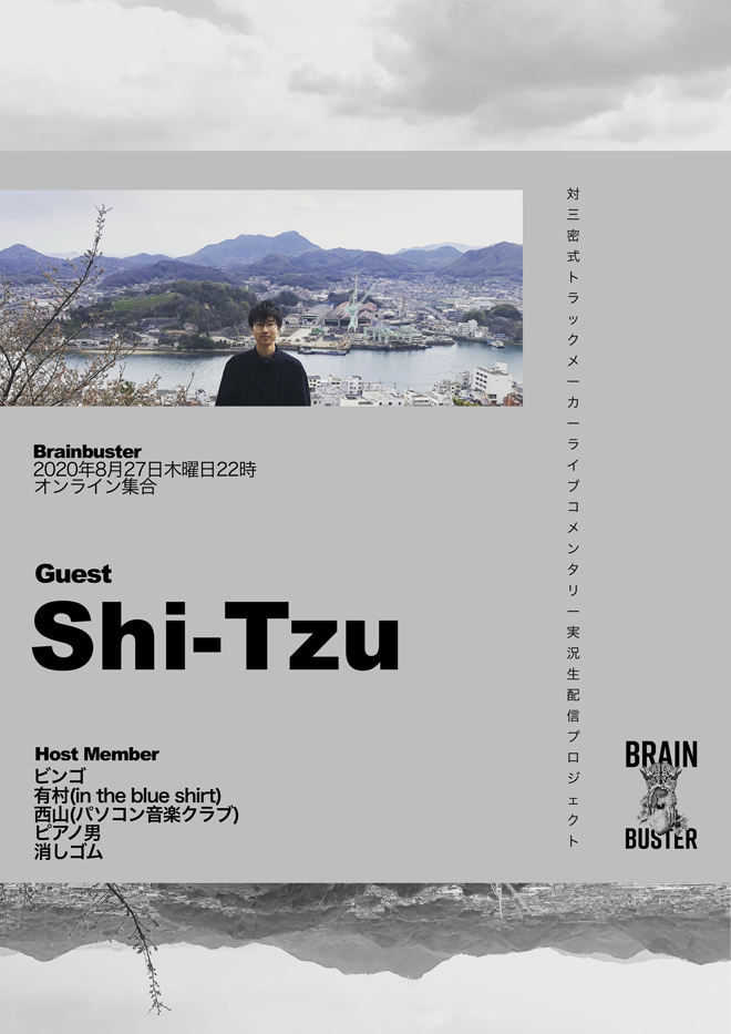 今回ライブアクトには<Brainbuster>のホストメンバーでもありパソコン音楽クラブとしての活動でシーンを席巻する西山のソロプロジェクト「Shi-Tzu」がついに登場。このために事前に録画されたスペシャルライブを解説&ツッコミまくりの60分、配信スタイルの固定観念に“ブレーンバスター”をしかける。