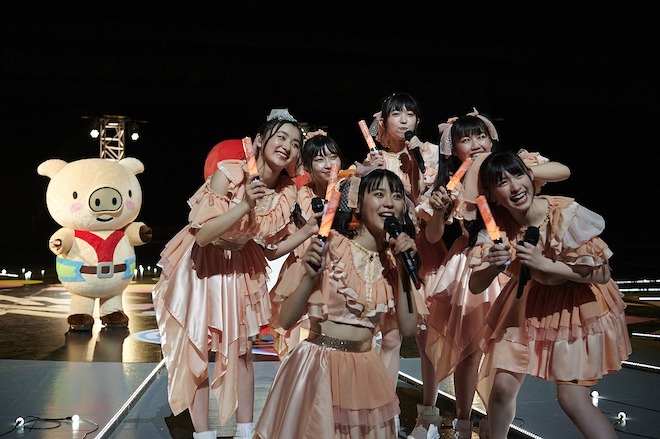 続く「初恋サイクリング」では、メンバーたちが自転車に乗って登場し、無邪気に漕ぎ回りながら歌唱する姿を見せた。「恋のシェイプアップ♡」では、ゆるキャラたちも登場し一緒にパフォーマンス。広いアリーナをふんだんに利用した企画と演出で、観客を楽しませた。