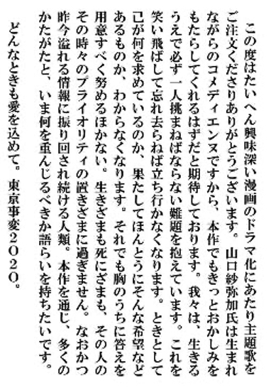 ■ドラマ制作 祖父江里奈プロデューサー コメント
