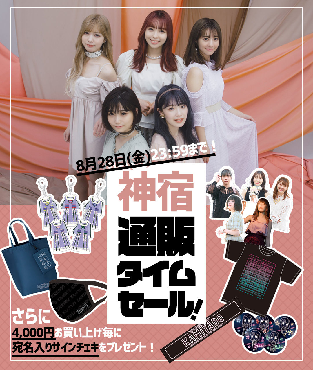 9月5日からは<神宿HALL TOUR 2020>の開催が決定している神宿だが、タイムセールではツアーグッズ、リリース記念グッズ、Mカードなど人気のアイテムが勢ぞろいしている。タイムセールは8月28日(金)23:59まで。