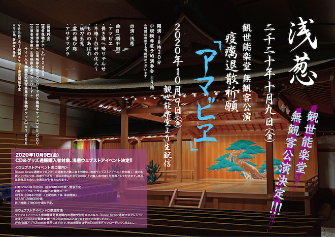 浅葱、観世能楽堂より無観客公演<疫癘退散祈願 「アマビヱ」>生配信