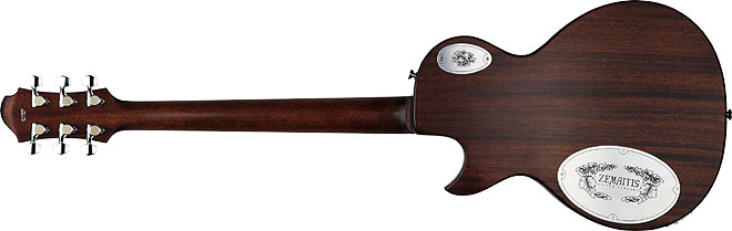 弦の角度に合わせたアングル付きピックアップ・リングを搭載する。ボディ・バックは目の詰まったアフリカン・マホガニーを採用。サウンドに大きく影響を与えるブリッジ、テイルピースはゼマイティス・オリジナルのアルミ合金を使用。ヘッドストックのZロゴ・バッジ、トラスロッド・カバー、ボディ・バックのプレート、アウトプット・ジャックのプレート、ピックアップ・リングにも彫金を加えた仕様となっている。