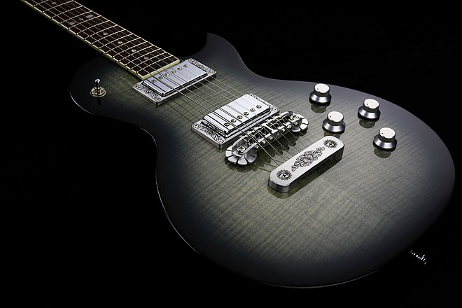 こちらもヘッドストックのZロゴ・バッジ、トラスロッド・カバー、ボディー・バックのプレート、アウトプット・ジャック・プレート、ピックアップ・リングに彫金装飾が加えられている。キルテッド・メイプル・トップのブルー・バーストとフレイム・メイプル・トップのチャコール・バーストの2カラーをラインナップ。専用ギグバッグが付属する。