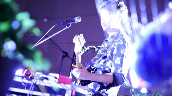 そこから知(G)がかき鳴らすギターにシーケンスで鳴らしたホーンの音色が重なるポップ・ソング「クライベイビー」、前ノリのリズムとYurin(Vo,G)が歌うメロディににじむノスタルジーに夏祭りを連想する「ばかやろう」、そしてフジムラ(B)が大胆にベースをスラップするファンクナンバー「フューリー」というそれぞれに異なる魅力が印象的な3rdアルバム『SODA POP FANCLUB 3』からの3曲を繋げ、演奏の熱がぐっと上がったところで、前半戦が終了。
