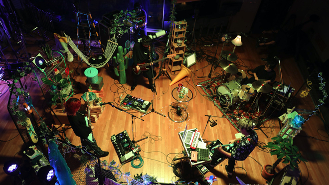 その直後のトークコーナーで、「ここからどんどんテンションが上がる演奏はもちろん、照明と(複数のカメラワークによる)演出を作りこんだライブ映像も楽しんでほしい」とメンバーが口々に見どころを伝えると、ビタースウィートなロックナンバーの「エバーグリーン」、シャッフルのリズムがけだるく跳ねる「なまけもの」という彼らのライブではお馴染みのアンセムを立て続けに演奏して、視聴者の気持ちをぐっと掴む。