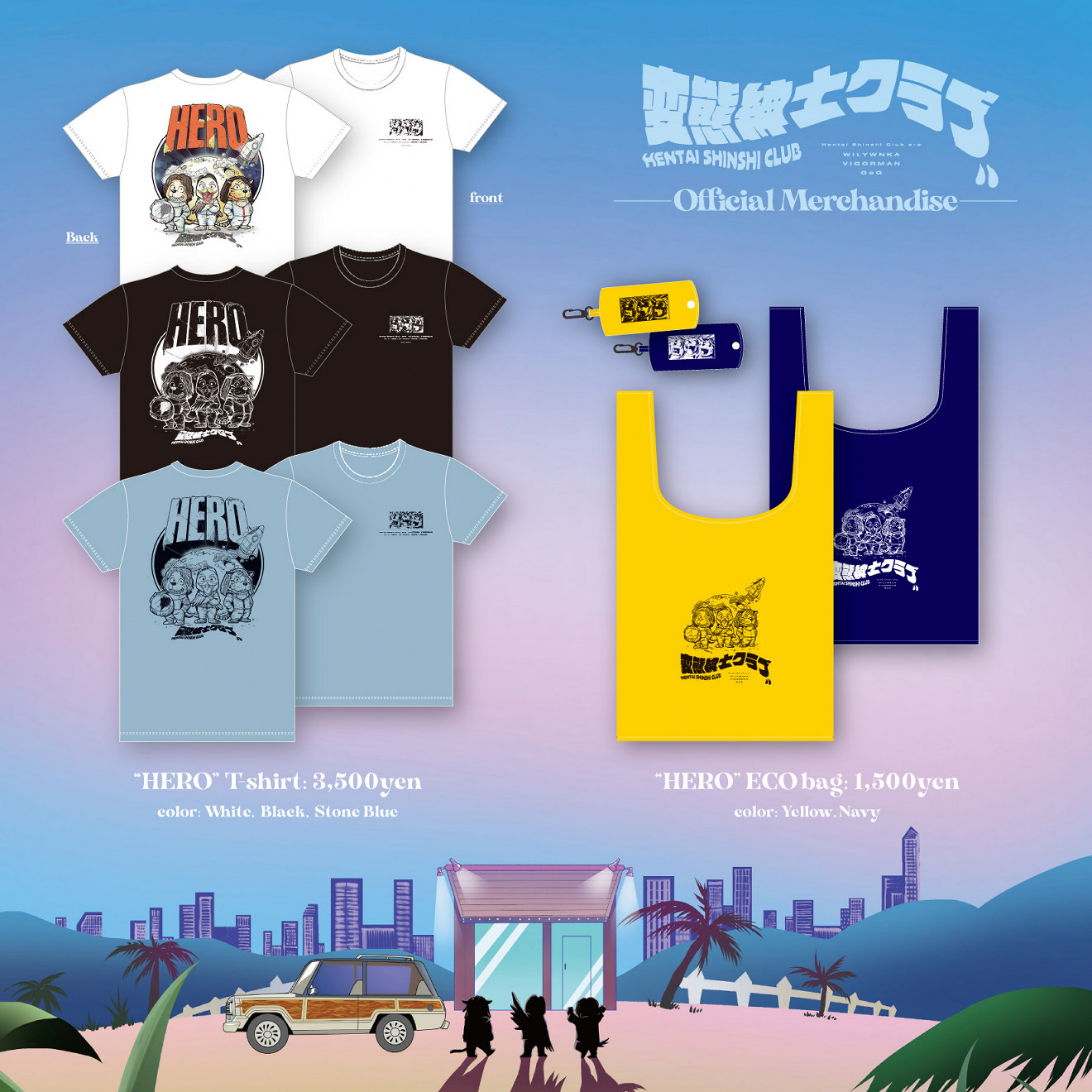 “HERO”グッズはTシャツとエコバックの2種類をリリース。数量限定のため、在庫がなくなり次第販売終了となる。また、初の公式LINEスタンプも『HERO』のアートワークで使用されたイラストを使用した、彼等らしいユーモアでコミカルなLINEスタンプとなっている。