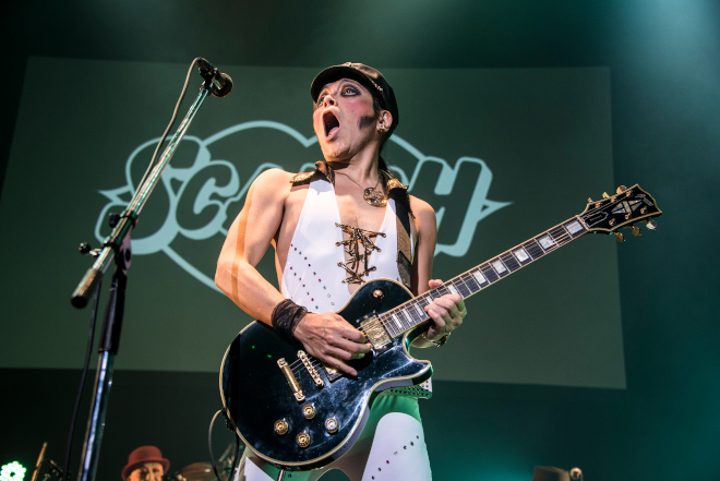 すかんちは82年結成、90年代デビュー。ド派手な演出とタイトでソリッドな演奏を誇るグラムロックバンドとして活躍。96年に解散するが2006年再結成。09年に紅一点のベーシストShima-changが事故により半身不随の重傷を負い、近年、小川文明、ドクター田中が他界するが、ROLLY、小畑ポンプを中心に、デビュー30周年の節目のライブでファンの前に登場する。