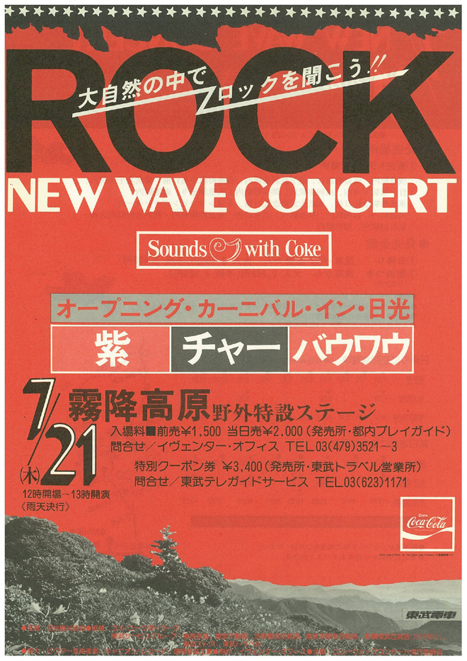 M:ところで77年7月には高橋廣行さん(当時アダン音楽事務所 現在はアイドルジャパンレコード社長)や永田友純さん(78年にホットスタッフ・プロモーション設立。会社名由来は勿論ローリング・ストーンズの代表作から)のプロデュースで日光霧降高原に10000人以上のオーディアンスを集めて“NEW WAVE CONCERT”開催されたんだけど憶えてる?