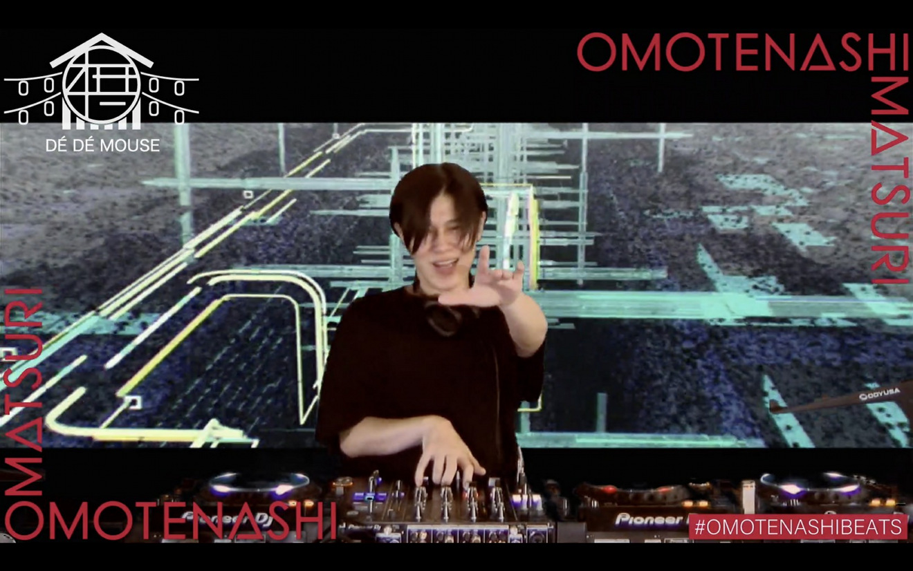 続けて、前回出演時に多くの視聴者から「ファンになった!」と大好評であったDÉ DÉ MOUSEのプレイがスタート。自身の楽曲のエディットや未発表曲のみで構成され、クラブ現場をそのまま持ってきたかのようなハイクオリティーなパフォーマンスとサウンドを届けた。終盤には和を感じさせるようなサウンドも入り、かっこよさとノリの良さを共存させる巧みなプレイで、視聴者を絶え間なく楽しませた。