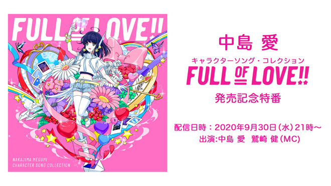 中島 愛が、キャラクターソング・コレクション『FULL OF LOVE!!』の発売を記念して、リリース日である9月30日(水)21時より特別番組を生配信する。