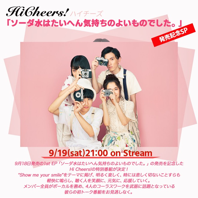これに伴って、自身初のEPリリースを記念した特別番組『「ソーダ水はたいへん気持ちのよいものでした。」発売記念SP』が、9月19日21:00からスペースシャワーTVの公式LINEアカウントおよび、Hi Cheers!オフィシャルYouTubeチャンネルで生配信されることも明かとなった。この配信番組では、メンバー自身の口から1st EP「ソーダ水はたいへん気持ちのよいものでした。」についての魅力や制作秘話などを語るトークパートや、生配信番組ならではの企画も準備されているとのことだ。