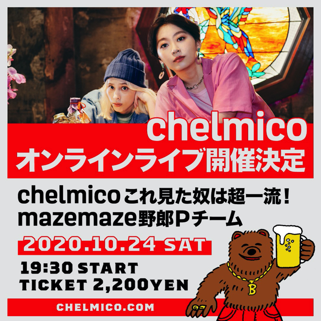 8月に開催された<chelmicoが2次元と3次元を行き来する#ごちゃmazeハイパーバーチャルライブ>も話題を呼んだchelmico。自身初の無観客有料オンラインライブとなる<chelmico これ見た奴は超一流!mazemaze野郎Pチーム>のチケットは、本日9月11日(金)より販売開始となる。