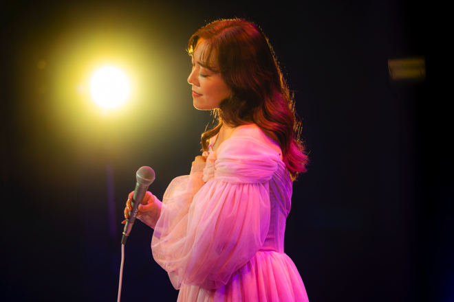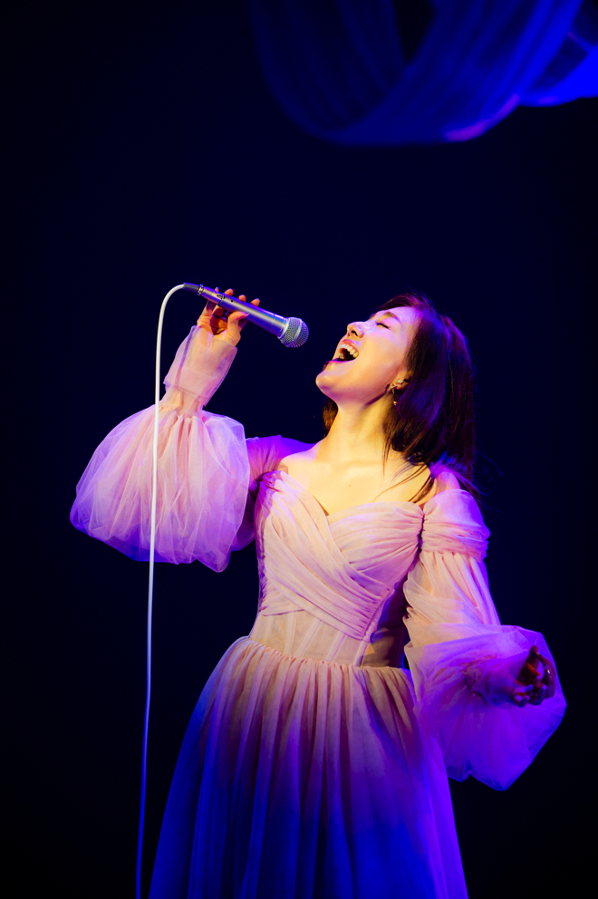 約20分の休憩/換気ののち、2部がスタート。1曲目は映画『グレイテスト・ショーマン』のオリジナル・サウンドトラックから「NEVER ENOUGH」だ。それはまるで、新型コロナウイルスによる膠着状態を打ち破るべくの決意表明ともとれる、力のみなぎる圧倒的な歌だった。「おひさま〜⼤切なあなたへ」「Reset」は、それらの歌がそもそも備えている強さを、この時代感がより際立たせることとなった。さらに、ミュージカル『メリー・ポピンズ』の「Supercalifragilisticexpialidocious」、同じく『ラブ・ネバー・ダイ』からの「Love Never Dies〜愛は死なず」を歌い、ミュージカル女優としても高く評価される一面も楽しませてくれた。そして、5月にリモート開催となった<TOKYO JAZZ +plus LIVE STREAM>で披露した、ランディ・ニューマンの「Feels Like Home」を歌い、ようやく“おうち=ステージ”に帰ってくることができた喜びを、父・平原まことのサックスとともに爆発させた。神々しいまでの歌を聴かせた中島みゆき作詞・作曲の「アリア-Air-」と、自分自身への問いかけを歌う「What I am -未来の私へ-」のパワーは、圧倒することで客席をさらなる静寂へと導いた。本編を締めくくった「BLESSING 祝福」は、本公演のコンセプト“The Lyrics”を象徴するかのように、剥き出しの言葉となって突き刺さった。