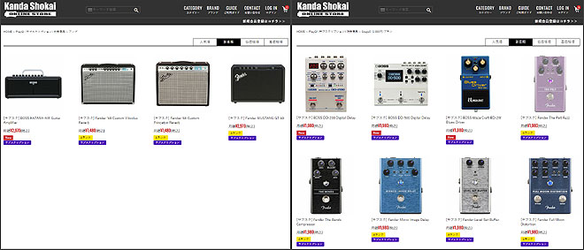 「Fender」「BOSS」など有名ブランドのギターエフェクターをラインナップ。