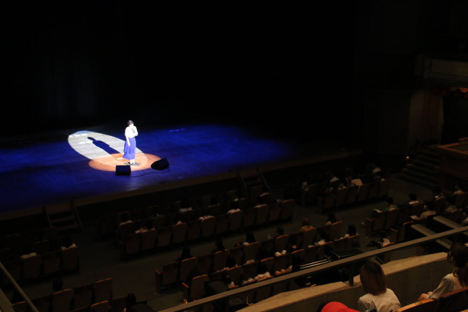 イベントでは、小山副学長より「TOMORROW」の歌詞の説明を入れての祝辞が述べられた。そして、「その岡本真夜さんが“TOMORROW”を歌いに来てくました」と、岡本がサプライズ登場。「TOMORROW」の歌唱で会場は騒然となり、歌い終わったところで「さらにもう一つサプライズがあります」と説明。校歌「光」を制作して準備していたことが初めて発表されるとともに、校歌「光」を初披露した。