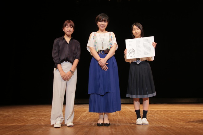 会場は、サプライズが続き最高潮に。最後は校歌「光」の歌詞と譜面にサインをして、生徒代表にプレゼントした。なお、今後この「光」を岡本がレコーディングする予定はなく、貴重なステージとなった。