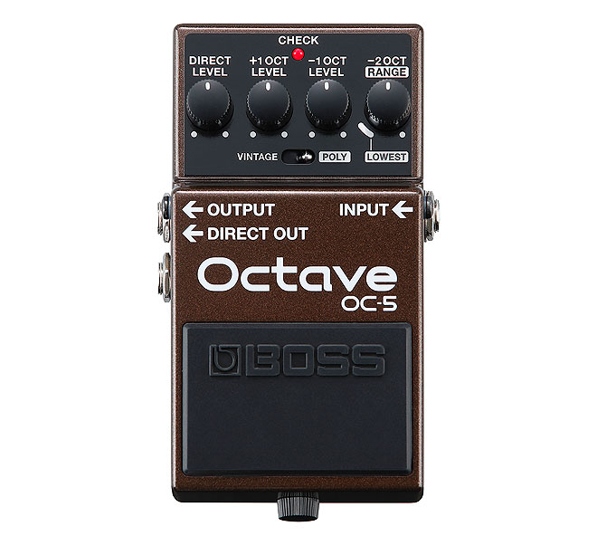 演奏した音に対してオクターブ下(または上)の音を生成、付加するエフェクター、“オクターブ・ペダル”。オクターブ・サウンドを加えることで、ジャズのギター演奏で頻繁に行われるオクターブ奏法のようなサウンドや、オルガンのように倍音豊かで厚みのあるサウンドなど、印象的な効果を得ることができる。そんなオクターブ・ペダルの最新モデルが「OC-5」だ。