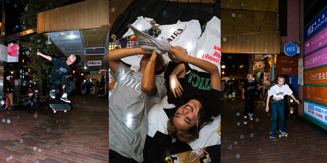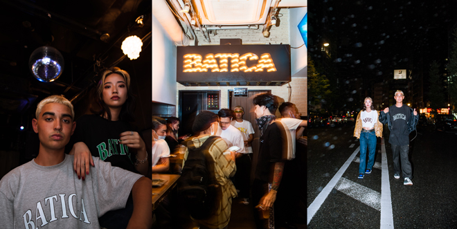 今回のTシャツのロゴデザインを手がけるのは、今までEBISUBATICAのイベントフライヤーを数多く制作したNOME TYY。ルック撮影もSHINING TNK、Tsubasa Yanaseが手掛け、モデルはJoy Inagawa、Manami Hiranoが務めた。平均年齢21歳というまさにEBISU BATICAならではのユースカルチャーによる感性が反映されたものとなっている。