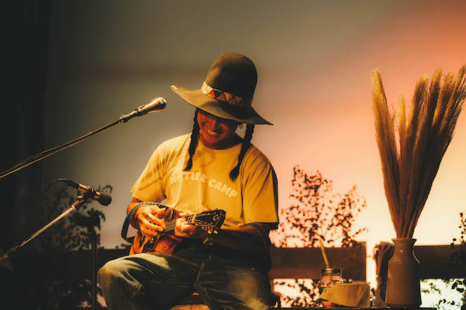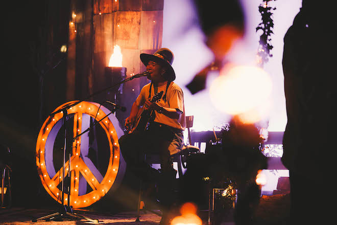 このライヴは<LIVE 2020“NATURE CAMP>と銘打たれ、その名前の通り、オンラインながらもまるで海外の野外フェスでキャンプをしているかのようなオーガニックな気持ちのいい雰囲気のセットの中で行われた。