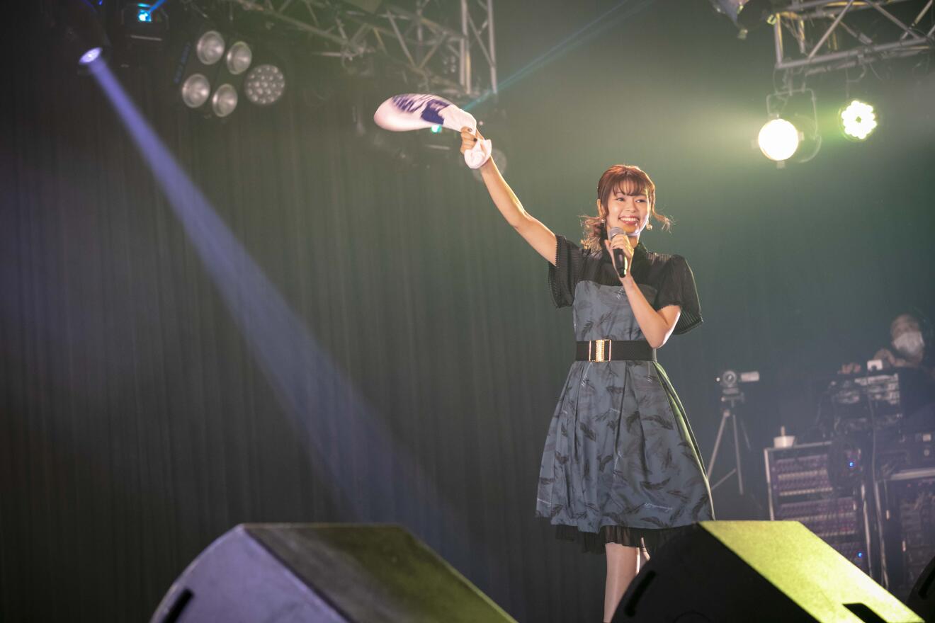 続いて登場したのは、今年ソロ活動10周年を迎えた池田彩。アニメ「プリキュア」の主題歌などでおなじみの人気シンガーだが、この日は「いろんな池田彩を堪能して欲しい」ということで、オリジナル曲を中心に選曲。1曲目の「全弦開放(イーマイナーイレブン)」は様々なジャンルのミュージシャンとコラボレーションする新プロジェクト「池田〇〇」の第1弾として発表された、ELLEGARDENの高田雄一(Ba)との楽曲だ。タオルを振り回して盛り上がれるロックチューンがあるかと思えば、アイルランドを訪れたことがきっかけで書き下ろしたという「SHAMROCK」では民族調なサウンドで旅する気分を演出。まくし立てるようなサビとエモーショナルな疾走感が印象的な「壊れてしまうその前に」や、突きあげる拳に力強い意志を込めた「Road」など、確かな表現力を持つ彼女だからこその世界観を堪能することができた。