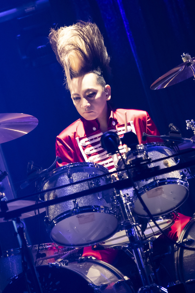 ラストは、アッパーなロックチューンであり、レクイエムでもある「独壇場Beauty –R.I.P.–」で締めくくった。そしてメンバーは、ステージを去る前にフロアに向けてピックを投げた。