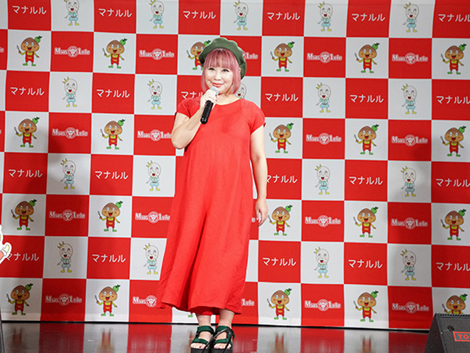「日本のマナーやルールを海外からの旅行者に向けて発信する漫画『マナルル』という企画があり、そこに私が4コマ漫画を描くことになりました。今『マナルル』のサイトには約50作品が、日本語・英語・中国語・韓国語の4か国語で掲載されています。ぜひチェックしてください」とPRし、さらにステージ上で「タケちゃん」の絵描き歌を披露した。