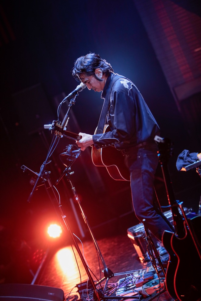 ただし、今回はBillboard Live TOKYOでの無観客収録ライブ。関係者の拍手と歓声が時折、聞こえてくるとは言え、オーディエンスを巻き込むパフォーマンスで<中津川ソーラー>を盛り上げてきた彼がどんなライブを見せてくれるのか、興味津々だったのだが、そこは生粋の歌唄いにして、卓越したギタリスト、そして手練れたパフォーマーだ。
