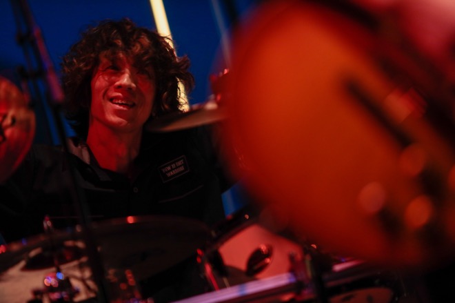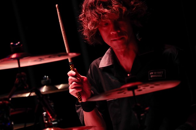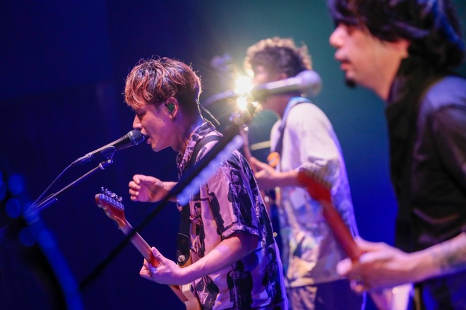 とはいえ「Milestone」では、起伏ある流れを作りながらギターソロを炸裂させる生方。嬉しそうな表情を見せながらとんでもないフレージングで攻める日向。恐ろしい手数で曲を熱く彩る大喜多の姿も。