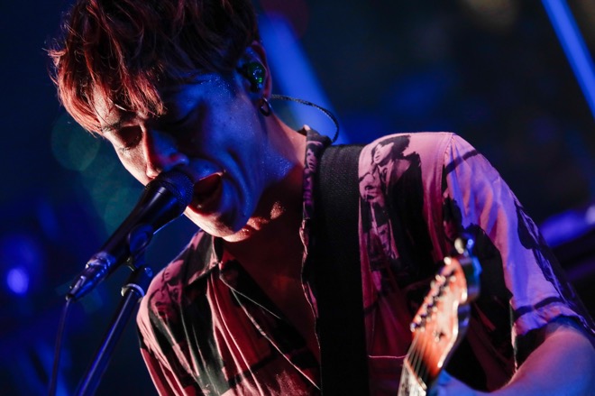 村松の短い挨拶を挟んで突入したのは「Midnight Train」。大喜多の刻むリズムに、日向のスラップ奏法が絡み、生方がリズミックに分散和音を奏でる。洗練されたアンサンブルだが、しかしナッシングス流のグルーヴはしっかりと貫かれる。ミッドナイトにはまだまだ早いが、メンバーの後方に広がるのは、すっかり暗くなった東京の夜景。ビルの明かりも色鮮やかだ。ライブでありながら、曲調と相まってミュージックビデオのように絵になっている4人でもある。