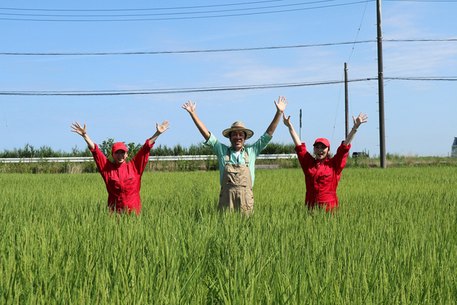 ▲「らぽっぽ なめがたファーマーズヴィレッジ」を訪れたメンバー(左から MARI・BON・MINAKO)