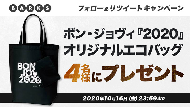 ボン・ジョヴィのニュー・アルバム『2020』の2020年10月2日発売を記念して、Twitterと連動した「ボン・ジョヴィ・オリジナルエコバック」プレゼントキャンペーンを実施します。リッチー・サンボラは戻っていないけど、往年のボン・ジョヴィサウンドが嬉しい『2020』の登場だ。レジ袋も有料のご時世、これは欲しいアイテムでしょう。奮ってご応募を。