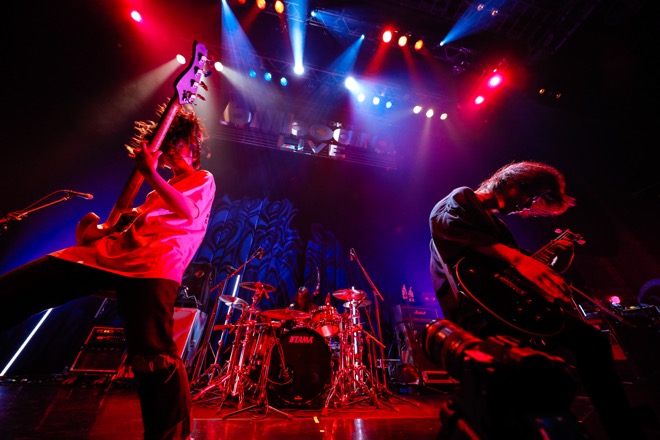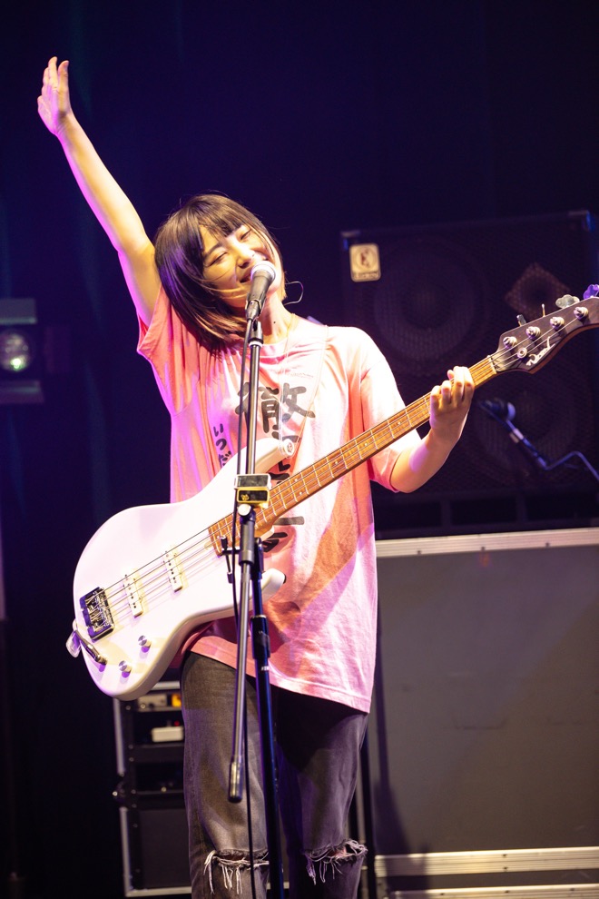 こやまたくや(Vo,G)は「いきますよ! 一緒に歌おう!」と声を上げ、しばたありぼぼ(B,Vo)は両手を耳に当て歓声を受け止める仕草を見せる。もちろん、そのタイトル通りの衝撃が響く「鬼POP激キャッチー最強ハイパーウルトラミュージック」に入っても当然のように加速。躊躇なく振り切ることができる彼らだからこその突き抜けた快感がどこまでも気持ちいい。