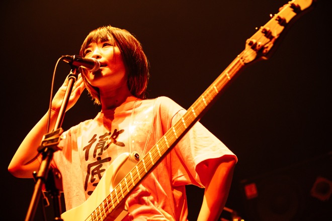 激しく覚醒し、中盤にはこやまがコール&レスポンスを投げかけた「貴志駅周辺なんもない(増税ver.)」でより興奮を呼び起こすだけに留まらず、「まだまだいくぞ」ともりもりもと(Dr)がオーディエンスを煽る声を上げてた。さらに「はたちのうた」、問答無用でテンションをぶち上げる「あつまれ!パーティーピーポー」と続ける様は痛快のひと言だ。