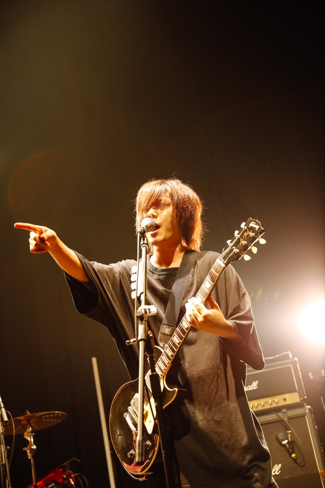 そして、そこからラストまでは破竹の快進撃。曲中にしばたが嬉しそうに飛び跳ね、それを見てもりもとも笑顔になった高速チューン「無線LANばり便利」、シリアスに疾走し、一心不乱にプレイするメンバーの姿にもグッときた「ヤバみ」、男女の関係を彼ららしいシャレのきいた視点で着目した「癒着☆NIGHT」と矢継ぎ早に繰り出していき、圧巻のフィナーレを飾ったのは代表曲でもある「ハッピーウェディング前ソング」だ。
