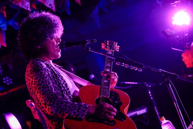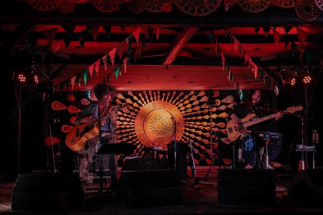そしてラストには、第一週目のシアターブルックのステージ等にも参加したセネガル出身のパーカッション奏者オマール・ゲンデファルをゲストに呼び込み、3人でプリンスの「I Would Die 4 U」をカバー。サウンド全体が生命力に満ちて、凄まじいうねりを生み出した。ミニマムな編成ながら、とんでもないスケール感が夜空に響き渡る。そしてステージを降りる際、「来年もよろしくね。これができたら何だってできる」とKenKenが口にし、その言葉に力強く頷いたタイジ。さすがの2人と言うべきだろう、しっかりと未来へ繋がったライブを見せてくれた。
