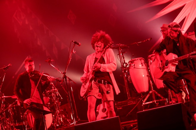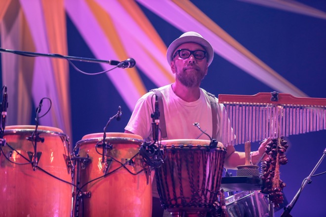 そこからアイリッシュテイストの叙情的な「MIDNIGHT SUN」で歌い、踊り、この時を謳歌する。MARTINのふくよかなヴォーカルにTOSHI-LOWのコーラスが重なり、MAKOTO (CONTRABASS)、RONJI (Dr)、KAKUEI (Perc)によるビートがしなやかに会場を揺らす。最高のはじまりだ。