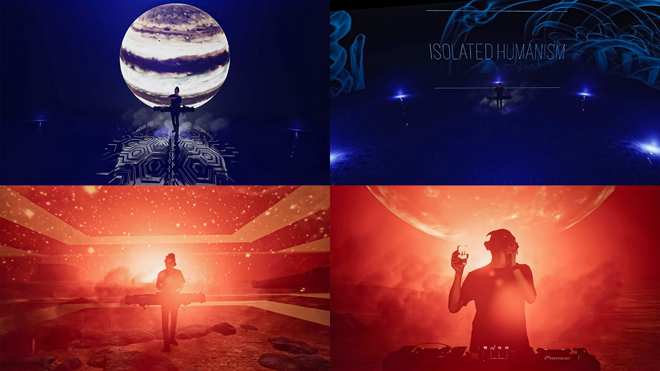 新型コロナウイルスの影響により、世界中でフェスやイベントが開催延期・中止となる中、その多くは広大なバーチャルの世界へと移行。この半年間で多種多様なイベントがオンラインで実施されてきた。 そんななか行われた<Jupiter – A VIRTUAL JOURNEY ->は、既存のオンラインイベントとは一線を画す新たなライブエンターテインメント……VRやAR、バーチャル、3D、全てを網羅したXRライブだ。それは目を見張るほどのビジュアルが生み出す圧倒的なリアリティ。人類未踏の地・木星をバーチャル上に荘厳に生み出す、その想像・創造力もさることながら、何より驚くべきは脅威の映像表現。言うなれば3Dと2Dのハイブリッド、バーチャル空間に投影されるVJ表現。3次元バーチャル空間の至るところがスクリーンとなりVJ映像の照射が可能に。それこそ大地や空中、ビルの窓1枚1枚などリアルでは到底不可能な場所も含め、あらゆるところにVJ映像が浮かび上がる異次元の世界観で視聴者を圧倒する。