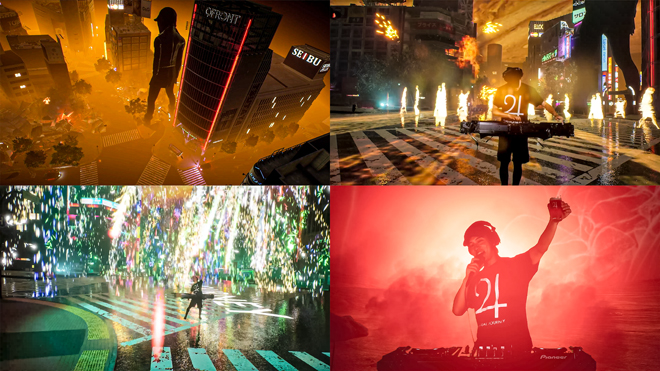 そしてトリを飾ったのはYELLOCK。直訳すると“どこか別の場所へ”、まさに異空間を指し示すMUZZ「Somewhere Else」で幕を開け、舞台は名残惜しくも木星を後にし、一路地球へ。日本は東京・渋谷スクランブル交差点へと帰還すると自身の楽曲「The Beginning」で新たな世界の始まりを演出する。今回はDJ AKi、Futurebound、そしてYELLOCKと三者三様ながら音楽でひとつの物語を紡ぐ、それがまた実にドラマチック。世界を身体で感じ、未開の地を駆け巡り、異空間を旅しながら新たなタームへ。XRライブという挑戦を音楽で表現する素晴らしいストーリーだった。