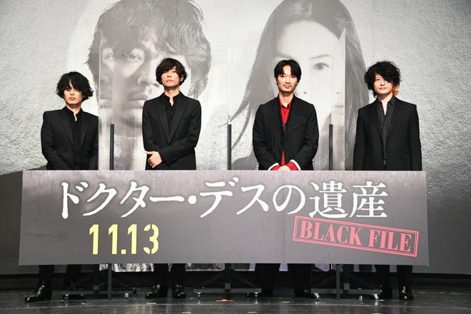 [Alexandros]が10月5日(月)、自身が主題歌を担当する映画『ドクター・デスの遺産-BLACK FILE-』の完成を記念したプレミアイベントに登壇した。そのオフィシャルレポートをお届けする。