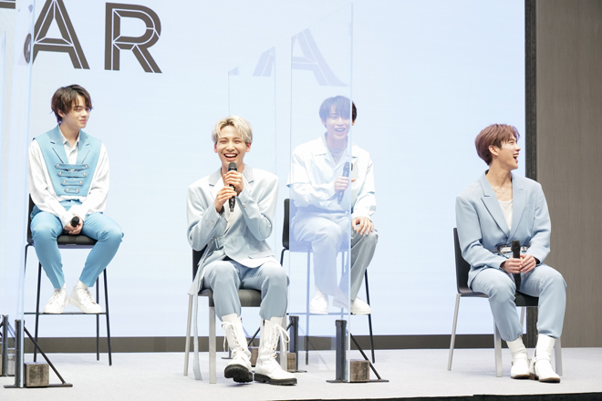 今回、JO1が記者会見で発表したのは大きく分けて3つのトピックだ。11月25日(水)に1stアルバム『The STAR』の発売が決定。同アルバムについて金城碧海は「その名の通り、輝く星という意味もあって、“輝く自分たちに出会えるよ”という想いがこめられています」とコメント。一方、大平祥生は1st、2ndシングル収録曲はもちろん『PRODUCE 101 JAPAN』時代に練習生として披露した「KungChiKiTa」、「やんちゃ BOY やんちゃ GIRL」のJO1 Ver.などを含む、新曲7曲も収録されていることも発表した。そんなアルバムの中から、思い入れのある曲を問われた鶴房汐恩は『SAFETY ZONE』を選び「“女性を俺が守るぜ”みたいな曲です。最後にラップがグーンと来るので素晴らしいです!」と述べた。