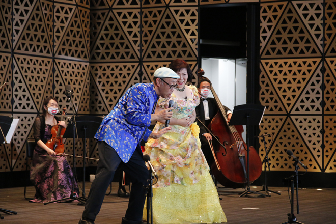 横山が歌うのは“オペラ王子”と言われるジャコモ・プッチーニ『ジャンニ・スキッキ』より「私のお父さん」。続いて小野が登場し、プッチーニの最後の作品『トゥーランドット』より「誰も寝てはならぬ」が始まる。そして“一応”本日最後の作品、オペラではなくミュージカル『マイフェアレディ』より「一晩中踊りたい」。軽やかな演奏と伸びやかな歌声で、今日の公演のクライマックスと言える瞬間だ。