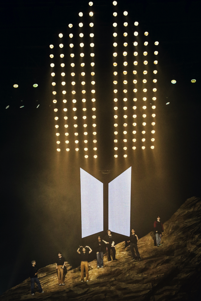 会場内には4つの大型ステージが設置され、AR技術で舞台上に巨大なRMの姿が現れた「Intro : Persona」や、自らの”影”と向き合うダークな世界を見せたSUGAの「Interlude : Shadow」、時計をモチーフにダンサー陣と臨場感あふれるパフォーマンスを届けたJUNG KOOKの「My Time」、次々と衣装を変えながら多彩な表情を見せたJIMINの「Filter」、惑星に囲まれて“星の王子さま”のような姿で披露されたJINの「Moon」、メリーゴーランドを舞台に“内なる子ども”と対面したVの「Inner Child」、自動車を使ったパフォーマンスも盛り込んで縦横無尽にステージを駆け巡ったJ-HOPEの「Outro : Ego」、そしてARMYの姿を映し出すキューブに彩られた「We are Bulletproof : the Eternal」など、それぞれの楽曲の世界観に合わせて創り上げられた舞台セットや演出も大きな見どころに。「ARMY ON AIR」を介してファンの合唱や歓声が響く中、メンバーたちは「画面越しでもARMYに会えて嬉しい」「久しぶりに皆さんの声を聴いていると力が湧きます。世界で一番きれいで幸せな声」と笑顔を見せた。