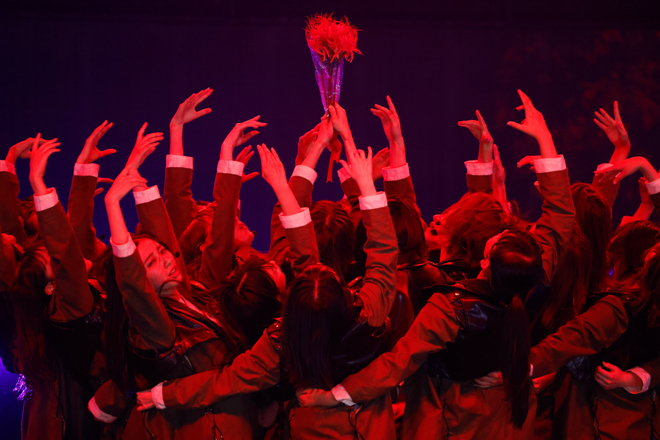 グループカラーである白を基調とした衣装を着用したメンバー14名は、ロングスカートをはためかせ、ダイナミックかつ抑揚のあるダンスと力強い歌声で新たな物語の幕開けを告げる。歌唱を終えたメンバーの元に全メンバーが集合すると、26名は桜吹雪が舞う中ステージをあとにした。