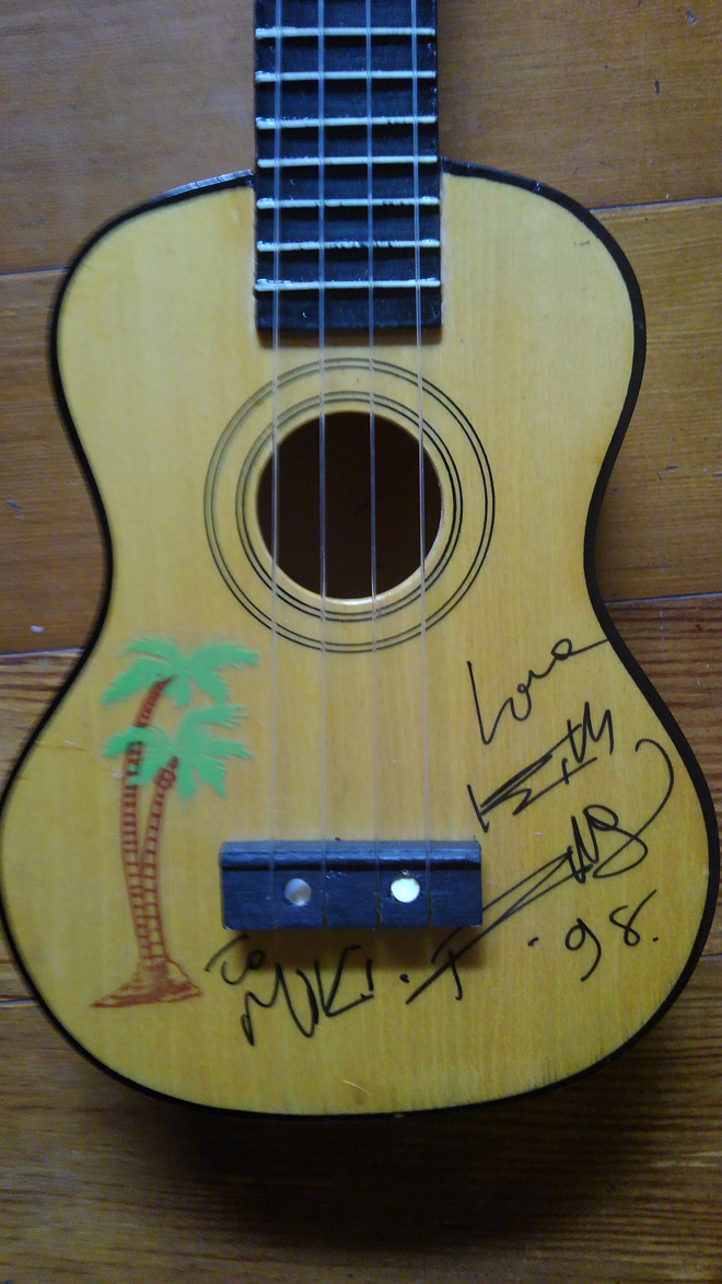 そういえばアロハ・スタジアムにタクシーで向かう前に煙草購入でコンビニ/ABCストアに寄ったんだけど、レジ前に土産用ウクレレ(殆ど玩具)が大量にぶら下がっていた、7~8ドルだったかな。ひとつゲット。インタビュー後CDや色紙等5マテリアル位にサインして貰ったけど、最後にウクレレにも。キースはいきなりそれを弾き出し“チュー二ングがなってない、ワハハ”!帰国後、お茶の水の楽器店でウクレレケースを購入したんだけどそちらは¥10000近くした。そのお店の副店長さんがキースの大ファンで僕のことも知ってて、ウクレレを嬉しそうに撮影していたことを想い出す…。
