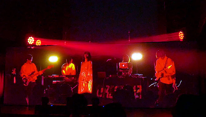 この映像はステージ前方設置されたプロジェクターでスクリーンに投影されているのだが、照明の色によっては多少見えにくくなることもあった。最初はその見え方に違和感があったものの、ライブ本番さながらの音響や照明の効果もあり、演奏に没入することができた。