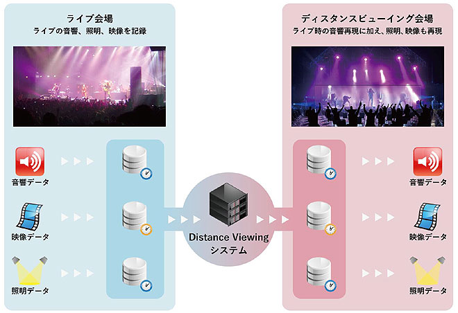 Distance Viewingの仕組みについては、「ライブ中の音響、映像、照明のデータをそれぞれ連携した形で保存し、それをもう一度再現させる」と説明がなされた。特にヤマハの中で力を入れているのは音だという。