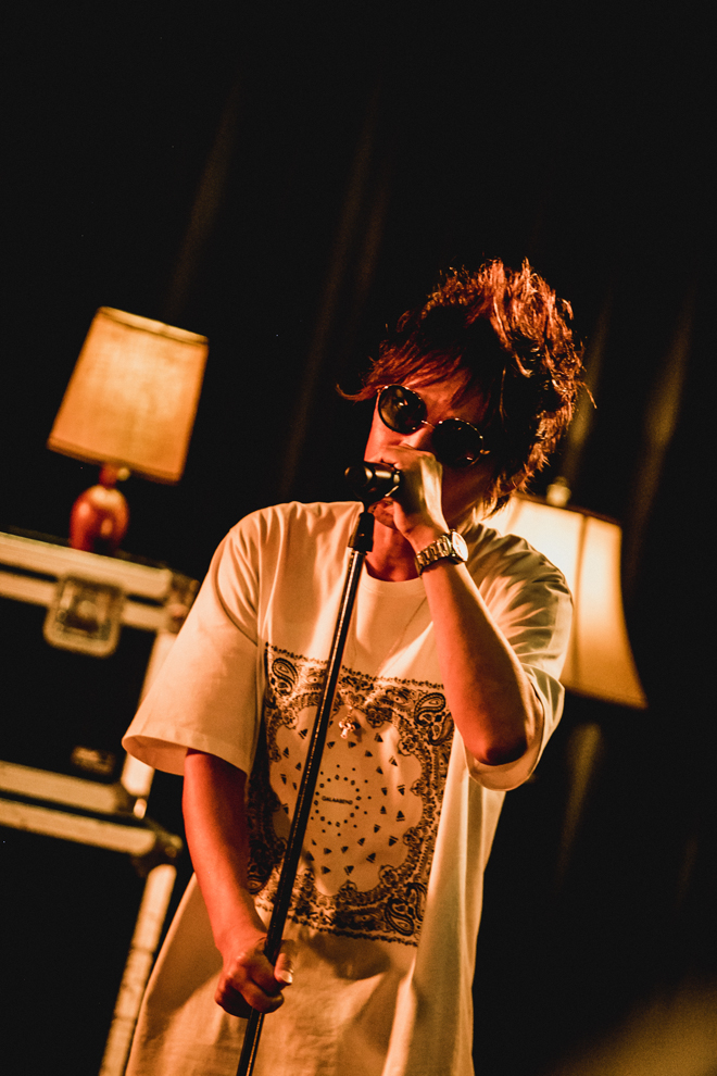 そして次の曲は9月30日(水)にリリースされた最新アルバム『Libertine Dreams』からの楽曲を初披露。本アルバムはINORANが一人でアレンジ・歌唱・演奏を行った打ち込みベースの作品だが、生身のメンバーたちがバンドヴァージョンとして具現化することでどう変化するのか? 期待に胸を高鳴らせていると、ひんやりとした質感のスペイシーなシンセ音が鳴り響き、リード曲「Don’t Bring Me Down」がスタート。ギターを持たず、マイクスタンドを前に低音ヴォイスで歌い出すINORAN。直前までの笑顔は消え、暗雲を蹴散らして闊歩するような、クールで不敵な男がそこにいた。Murataが哀切を帯びたギターフレーズを掻き鳴らし、u:zoが地を這うようなベースの律動を加え、Ryoのドラムが全身に響く鼓動を与えていく。音源とも違う、また新たにアップデートされたグルーヴは、音源の段階で描かれた設計図をさらに立体化するように、すべての音に瑞々しいまた新しい命が吹き込まれていた。