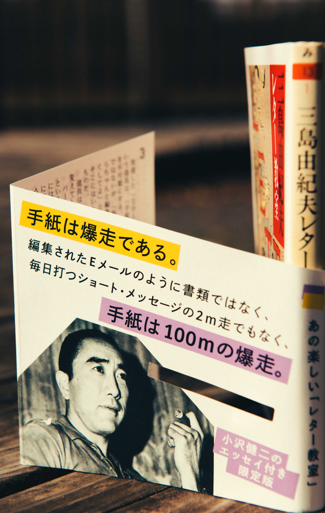 小沢は1992年に雑誌『オリーブ』で「私が文を学んだ本」として『三島由紀夫レター教室』を紹介しており、これをきっかけに、当時、同書には“突然話題沸騰 どうやら小沢健二さんのお気に入り本らしい”という帯が巻かれて話題を呼んだ。没後50年のメモリアルイヤーに合わせた新しい帯は、小沢の書き下ろしエッセイを掲載し、斜めのカットや切り抜きなどユニークな仕掛けを施したデザインになっているという。