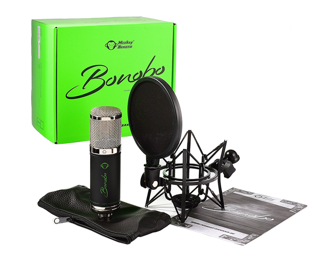 Bonoboは、34mmの大型ダイヤフラムを搭載し、声(ボーカル)やアコースティックギターなどの収録や、配信、放送用途などに最適な、緻密で豊かなサウンドが特徴のコンデンサーマイク。ショックマウント、ポップフィルターが付属しており、初めて購入するコンデンサーマイクとして最適だ。
